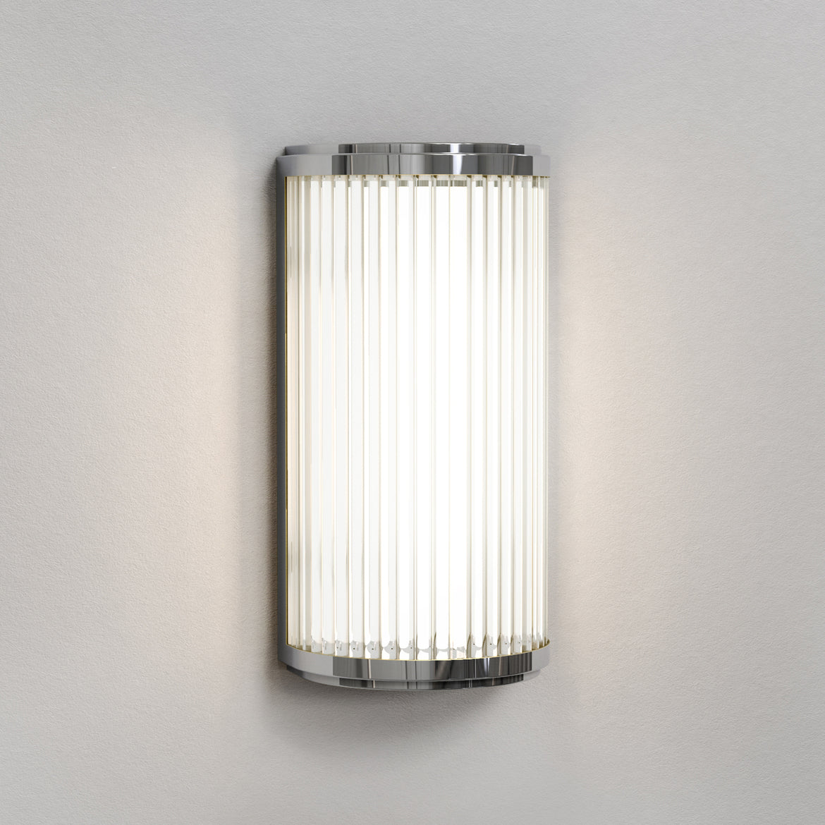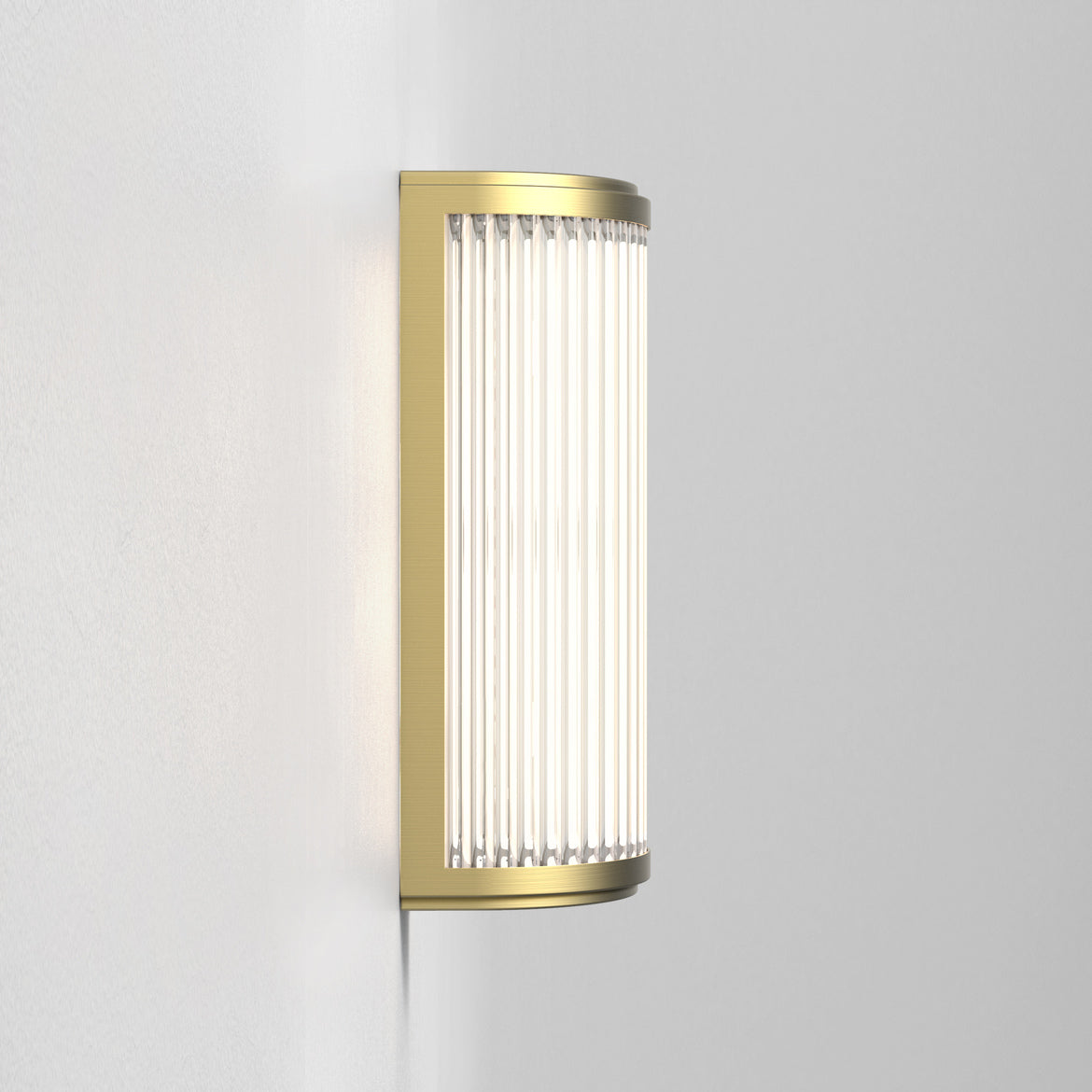 Intended primarily for bathrooms, but the streamlined design of the Versailles complements any space. Made from individual glass rods with metal end caps, it provides functional, glare-free task lighting that exudes vintage glamour. Available in matt gold or polished chrome finishes.